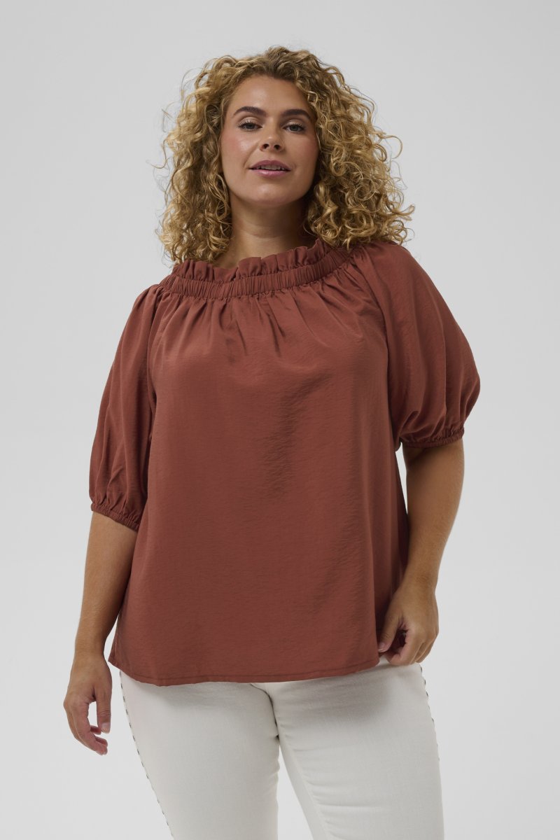 BlusFinns hos oss i storlekar 42–54Från märket Kaffe CurveTillverkad av 87 % viskos (LENZING™ ECOVERO™) och 13 % nylonLös passformFärgen är brunKlicka här för att se storleksguiden