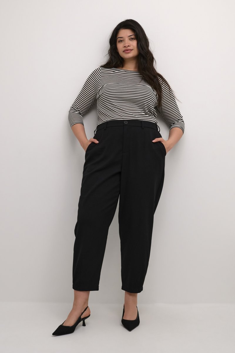 ByxorFinns hos oss i storlekar 42–56Från märket Kaffe CurveTillverkad av 64 % polyester (återvunnen), 33 % viskos och 3 % elastanLös passformFärgen är svartKlicka här för att se storleksguiden