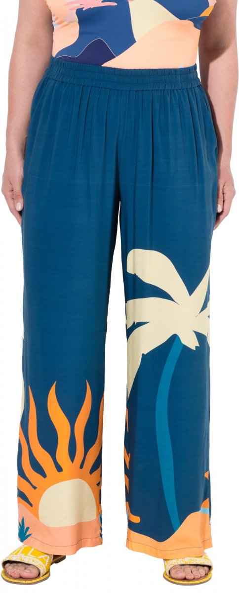 Ulla Popken Abstract Landscape Elastic Waist Palazzo Pants Blue