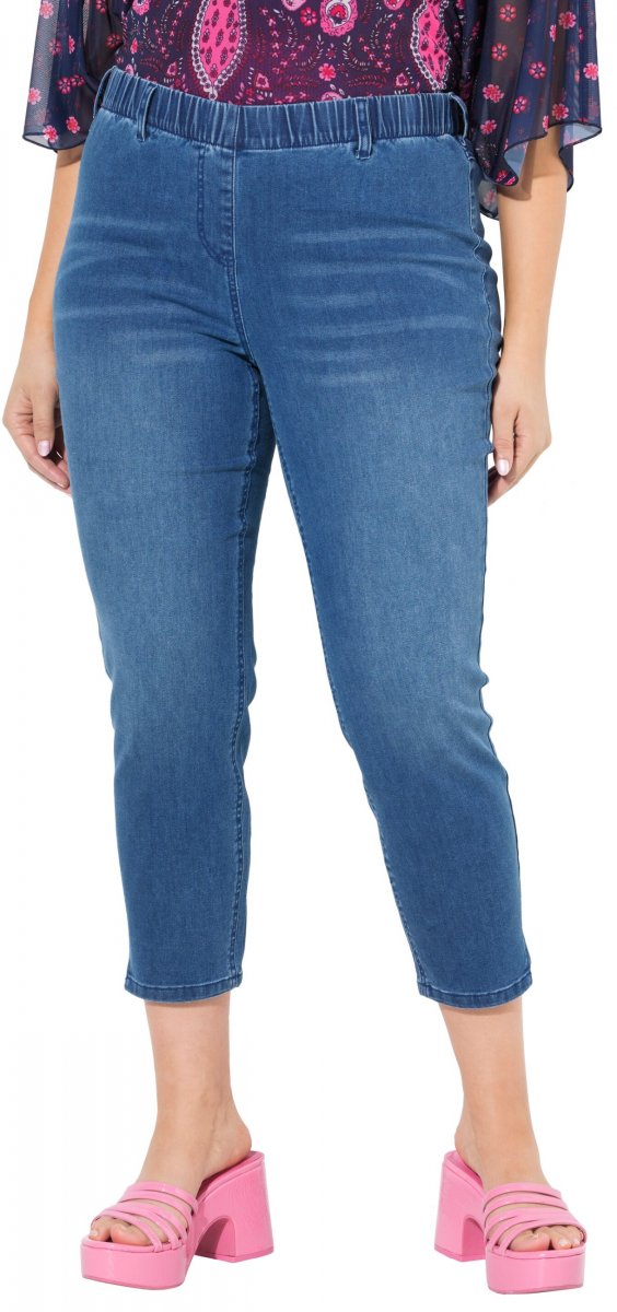 Storleksguide - Ulla Popken Cropped Denim Look Stretch Fit Leggings Light Blue Denim