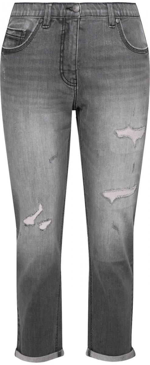 Ulla Popken Distressed Stretch Fit Boyfriend Jeans Dark Denim Blue