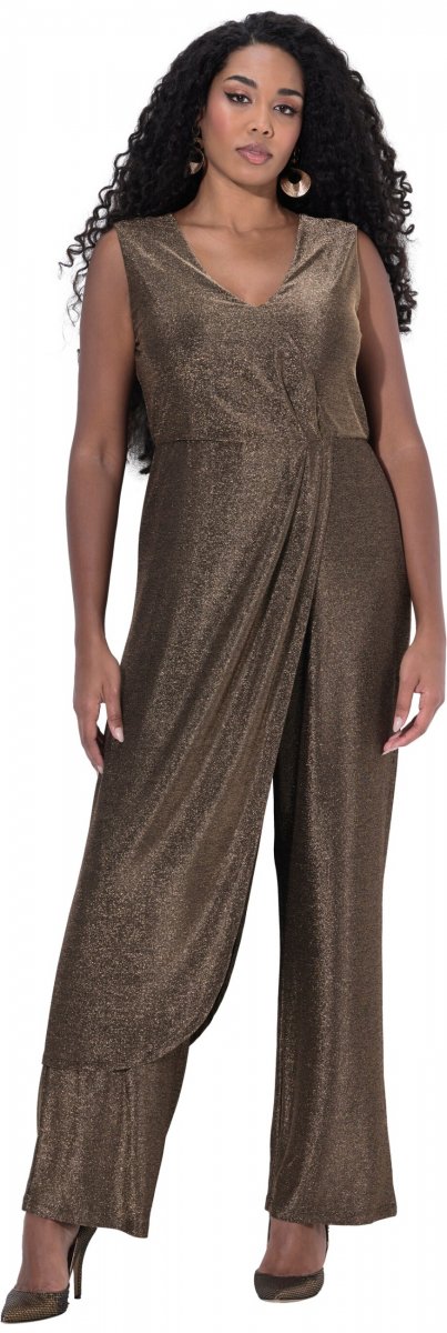 Storleksguide - Ulla Popken Draped Sleeveless Glitter Jumpsuit Pearl White