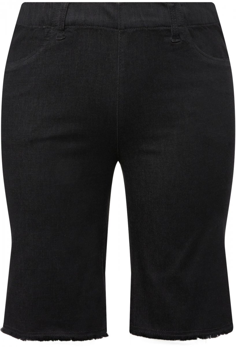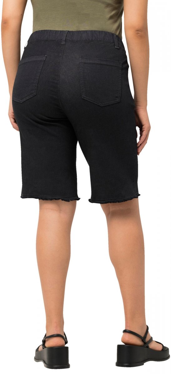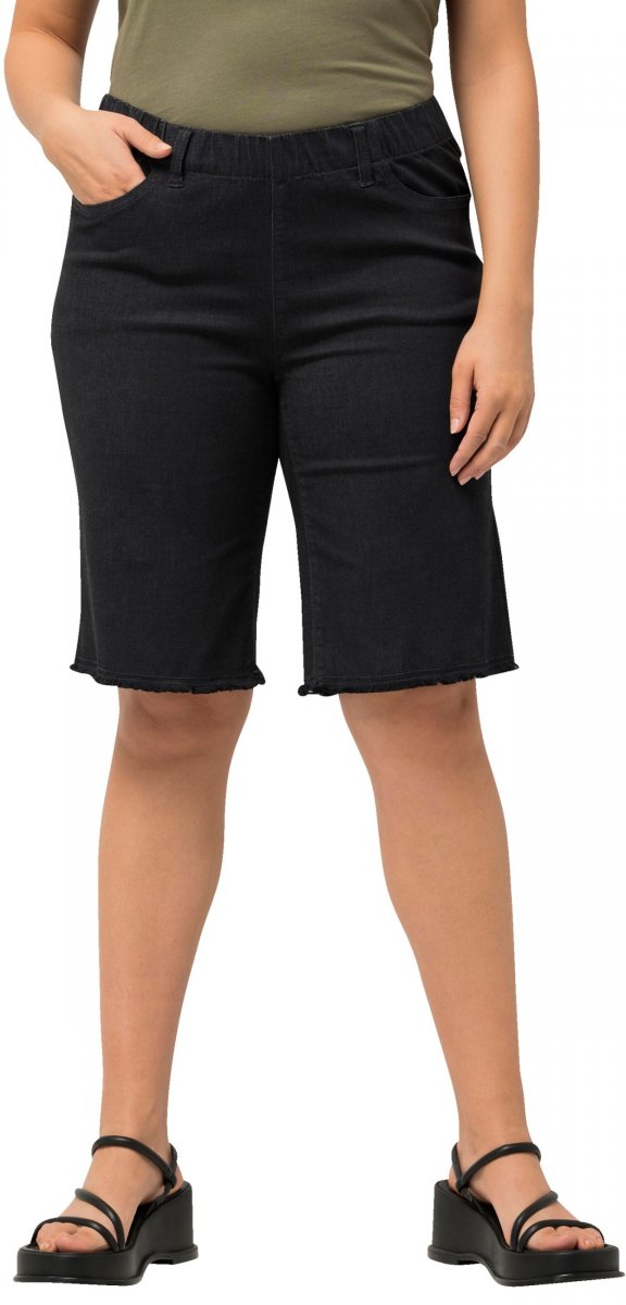 Ulla Popken Frayed Hemline Elastic Waistband Bermuda Shorts Black