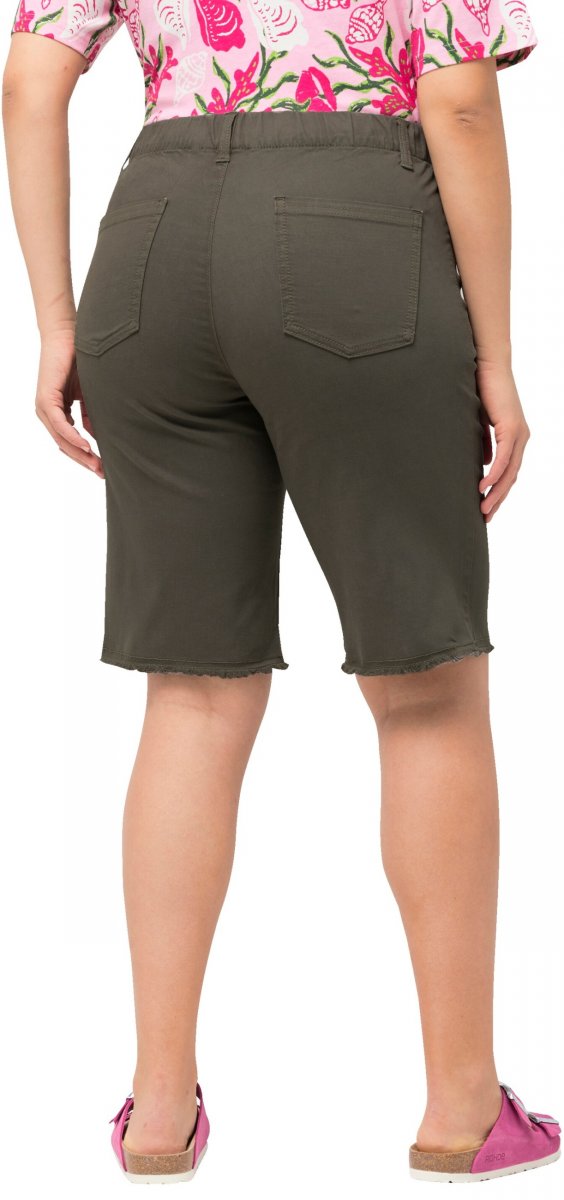 Storleksguide - Ulla Popken Frayed Hemline Elastic Waistband Bermuda Shorts Loden Green