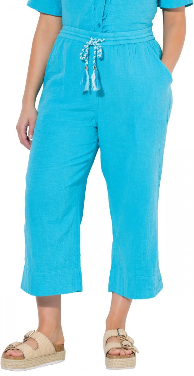 Ulla Popken Muslin Elastic Waist Culottes Blue