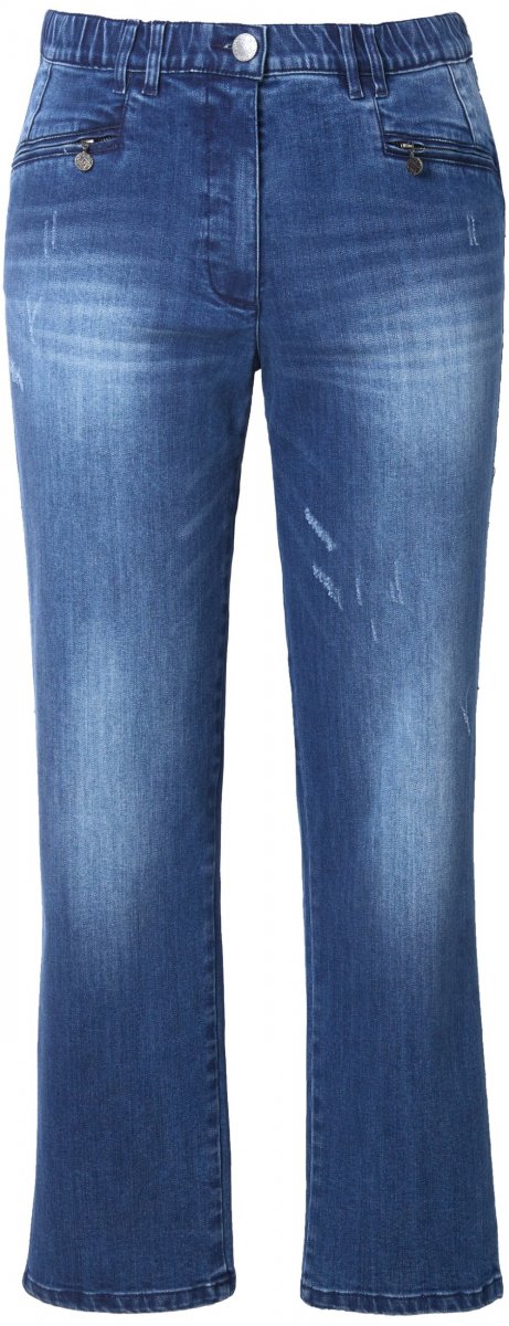 Ulla Popken Tapered Leg Lightly Distressed Jeans Denim Blue
