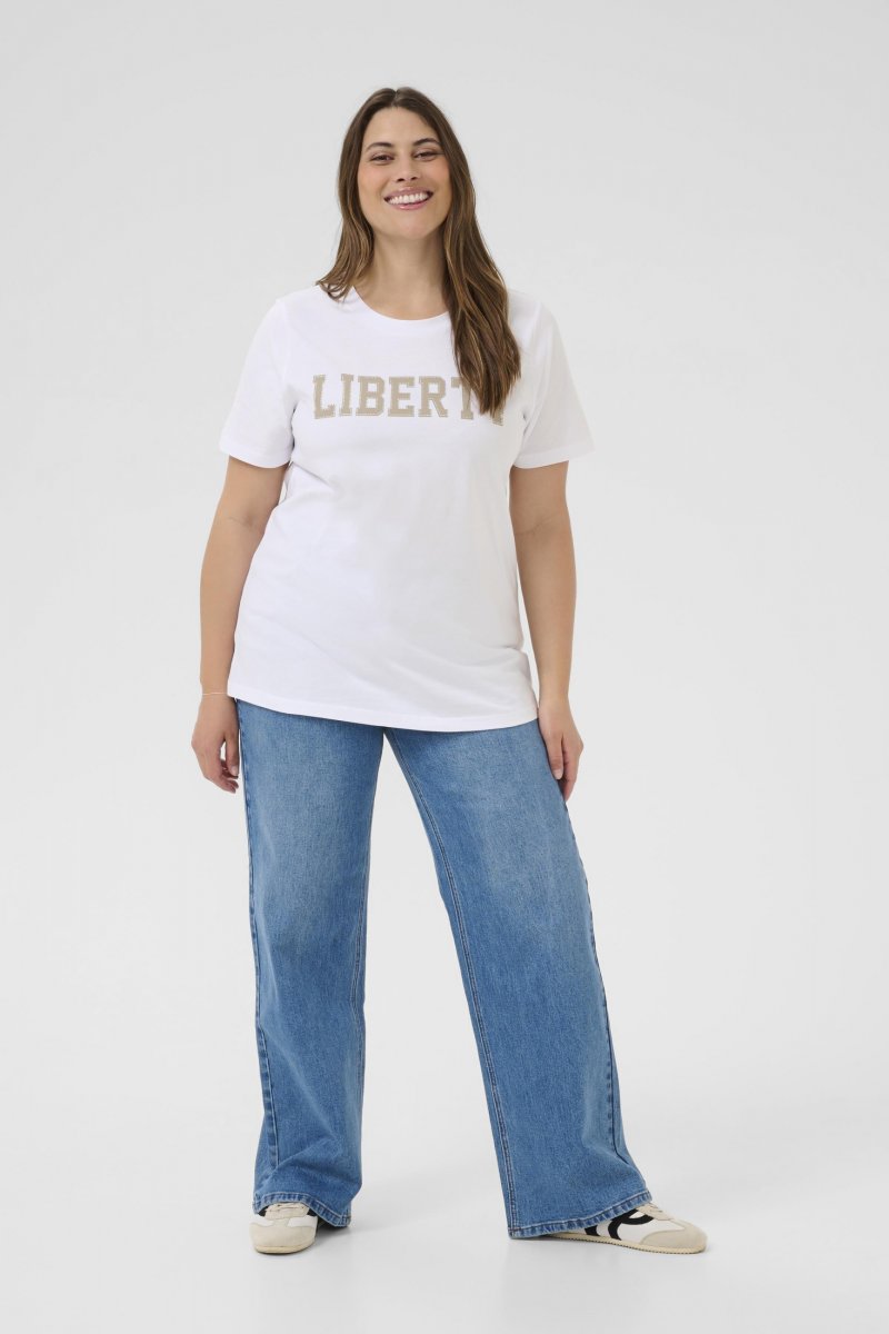 T-shirtFinns hos oss i storlekar S–XLFrån märket Kaffe CurveTillverkad av 100 % bomullNormal passformFärgen är vitKlicka här för att se storleksguiden