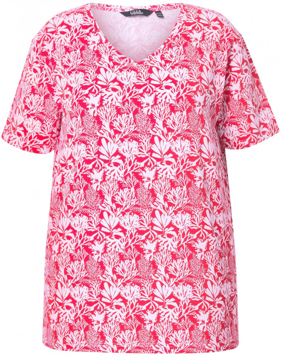 Storleksguide - Ulla Popken Coral Reef Printed Short Sleeve V-Neck Tee Lychee