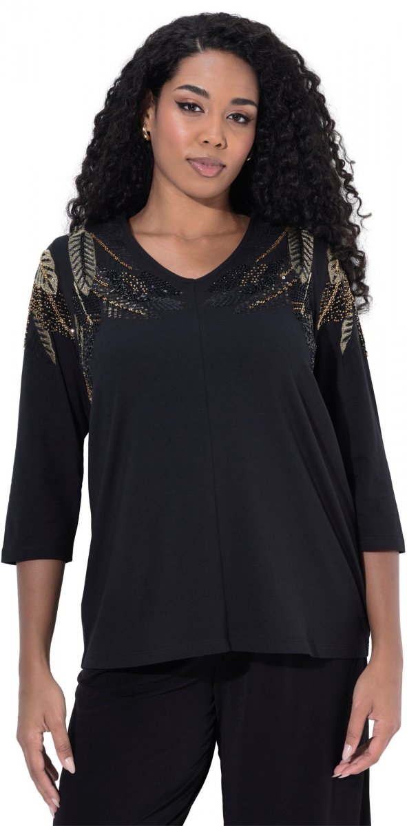 Storleksguide - Ulla Popken Feather Beadwork 3/4 Sleeve Top Black