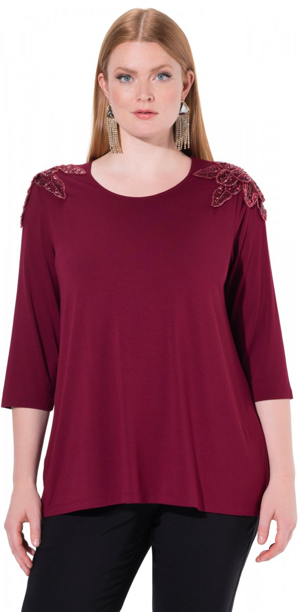 Storleksguide - Ulla Popken Flower Epaulet 3/4 Sleeve Top Dark Cherry Red