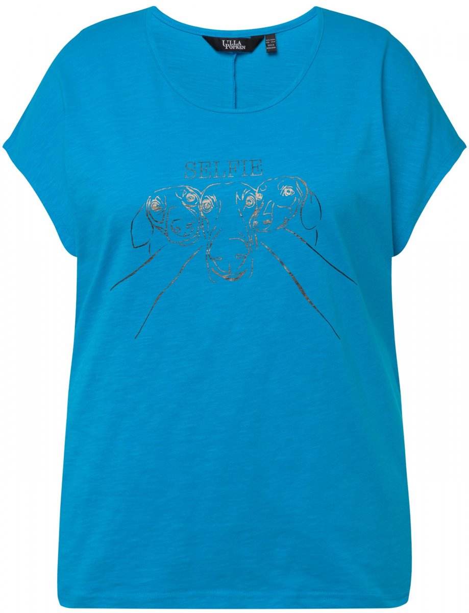 Ulla Popken Metallic Animal Cap Sleeve Graphic Tee Sapphire Blue