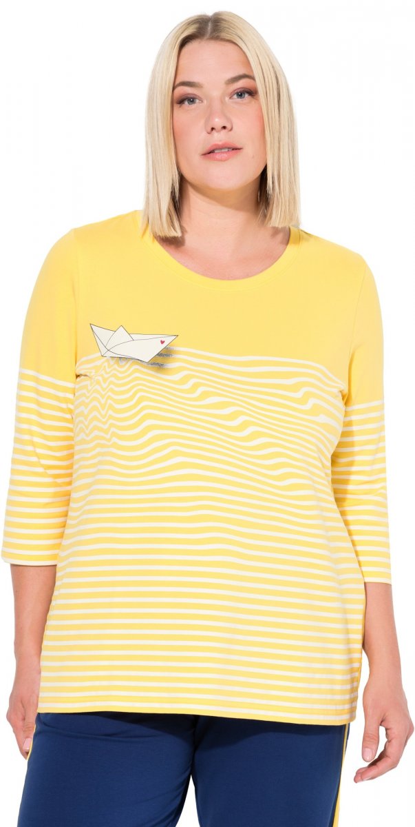 Storleksguide - Ulla Popken Paper Boat Print 3/4 Sleeve Tee Sun Yellow