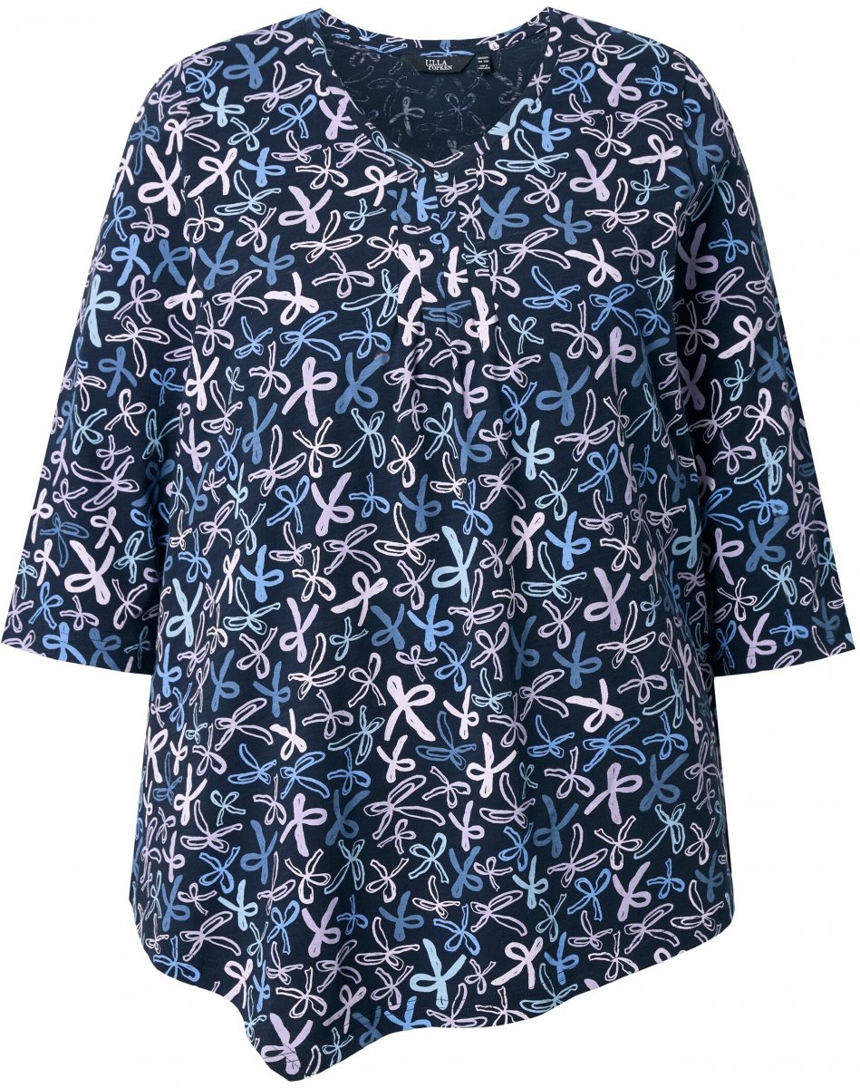 Storleksguide - Ulla Popken Ribbon Print 3/4 Sleeve Asymmetric Tee Navy