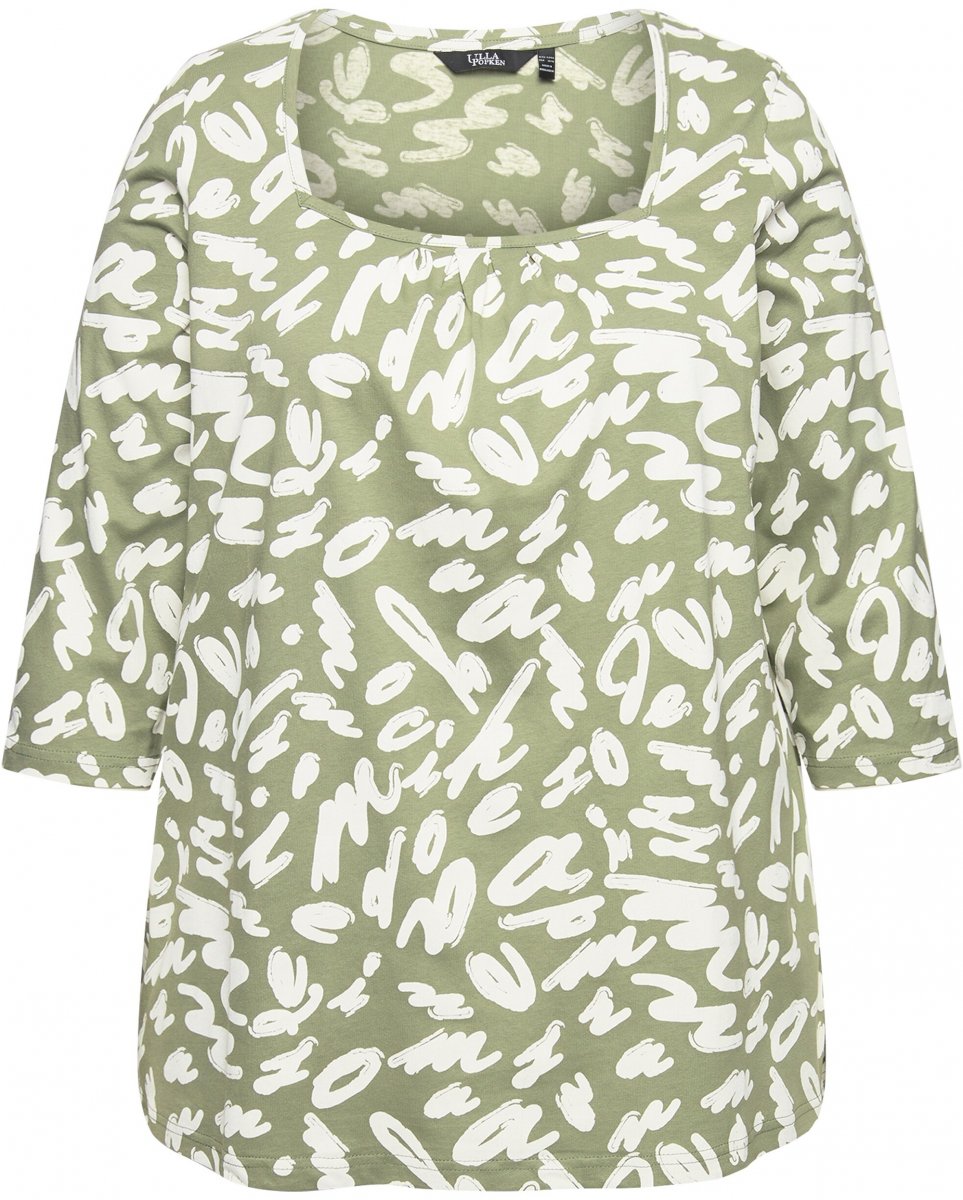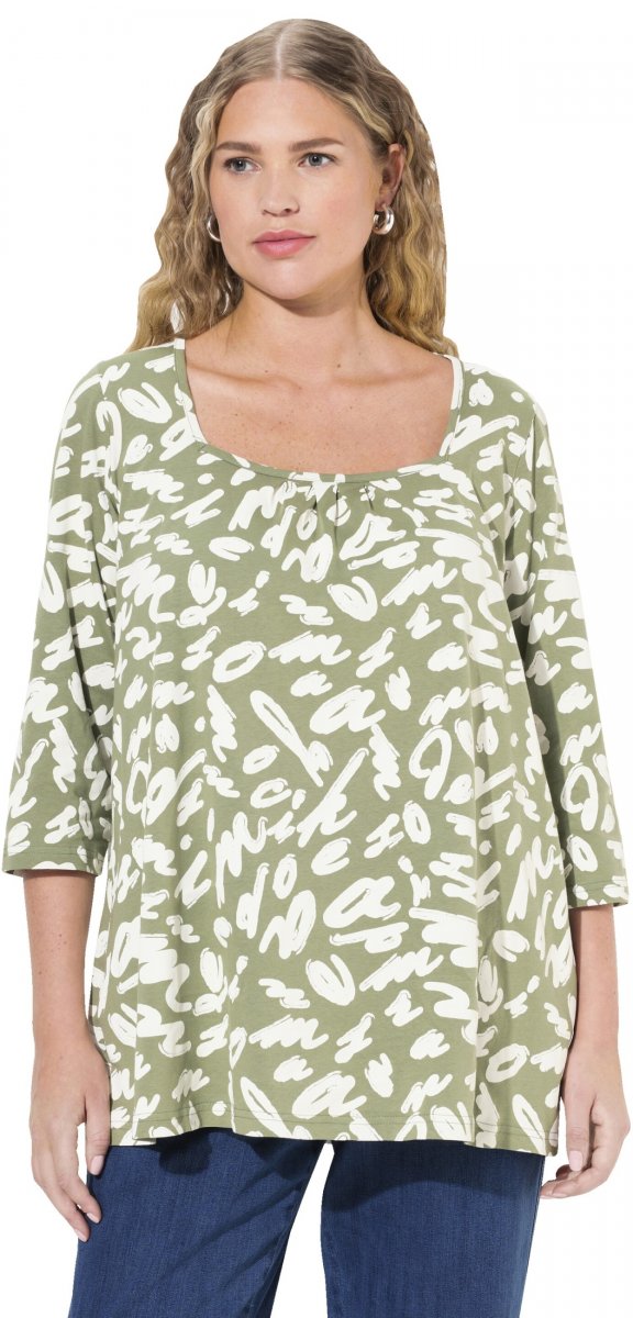 Storleksguide - Ulla Popken Scribble Print Square Neck 3/4 Sleeve Tee Sage Green