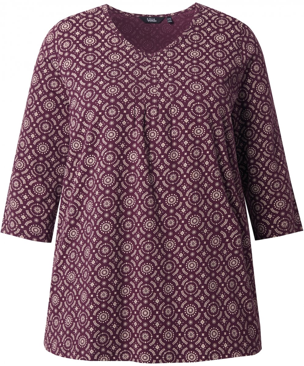 Storleksguide - Ulla Popken 3/4 Sleeve Geometric Graphic Tee Plum