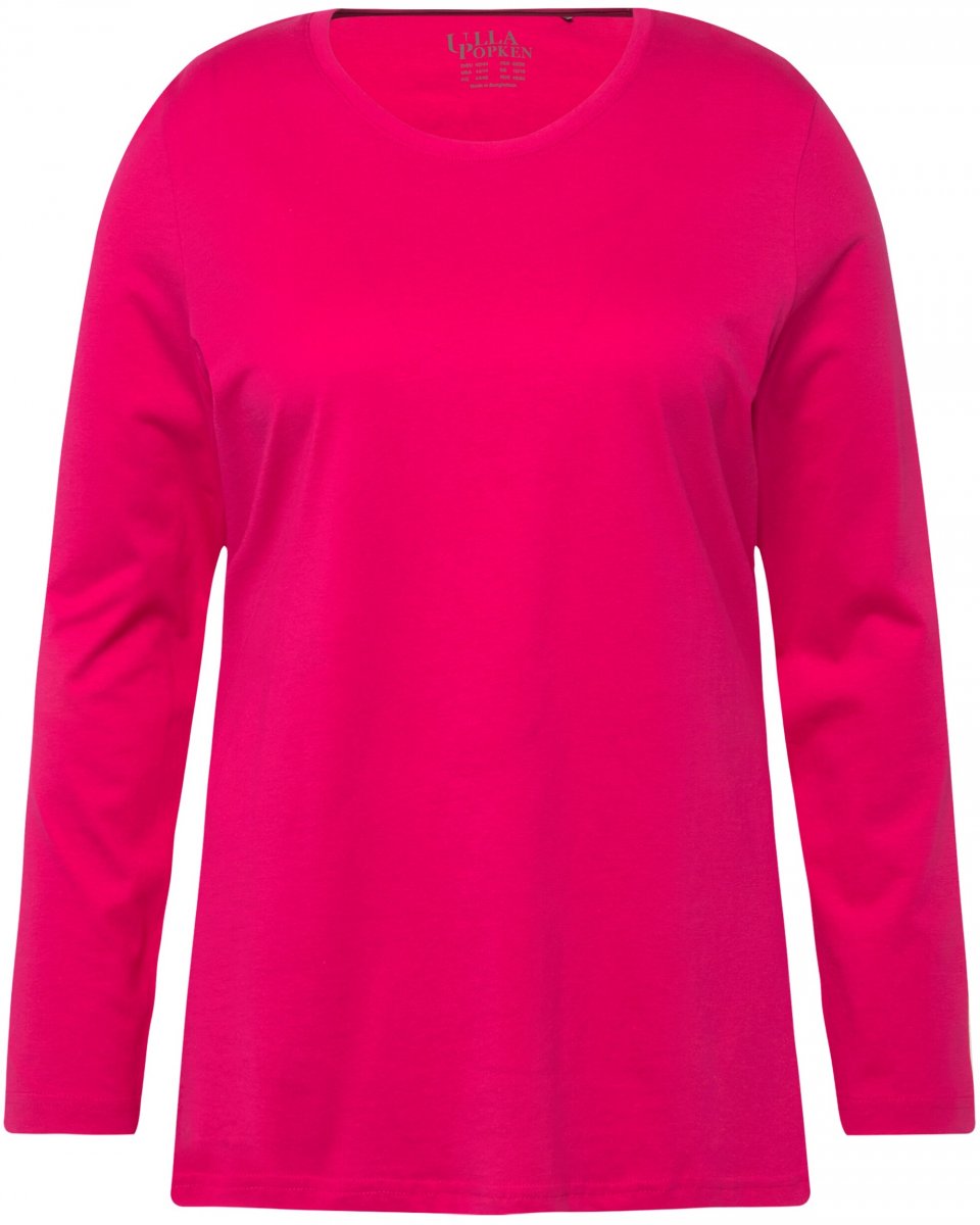 Ulla Popken Basic Round Neck Long Sleeve Slim Fit Cotton Tee Magenta Pink