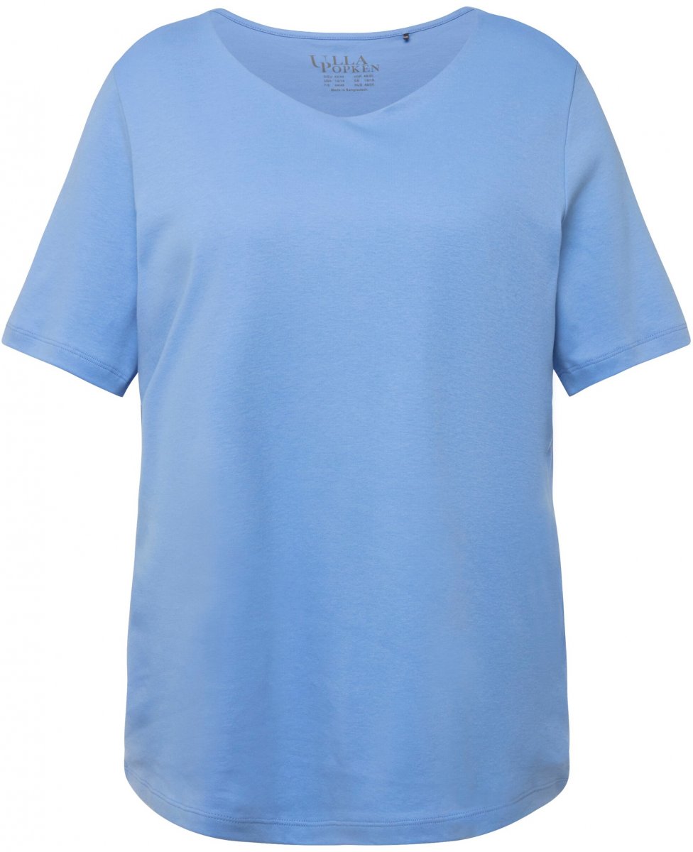 Storleksguide - Ulla Popken Double Layer Rounded V-Neck Slim Fit Tee Cloud Blue