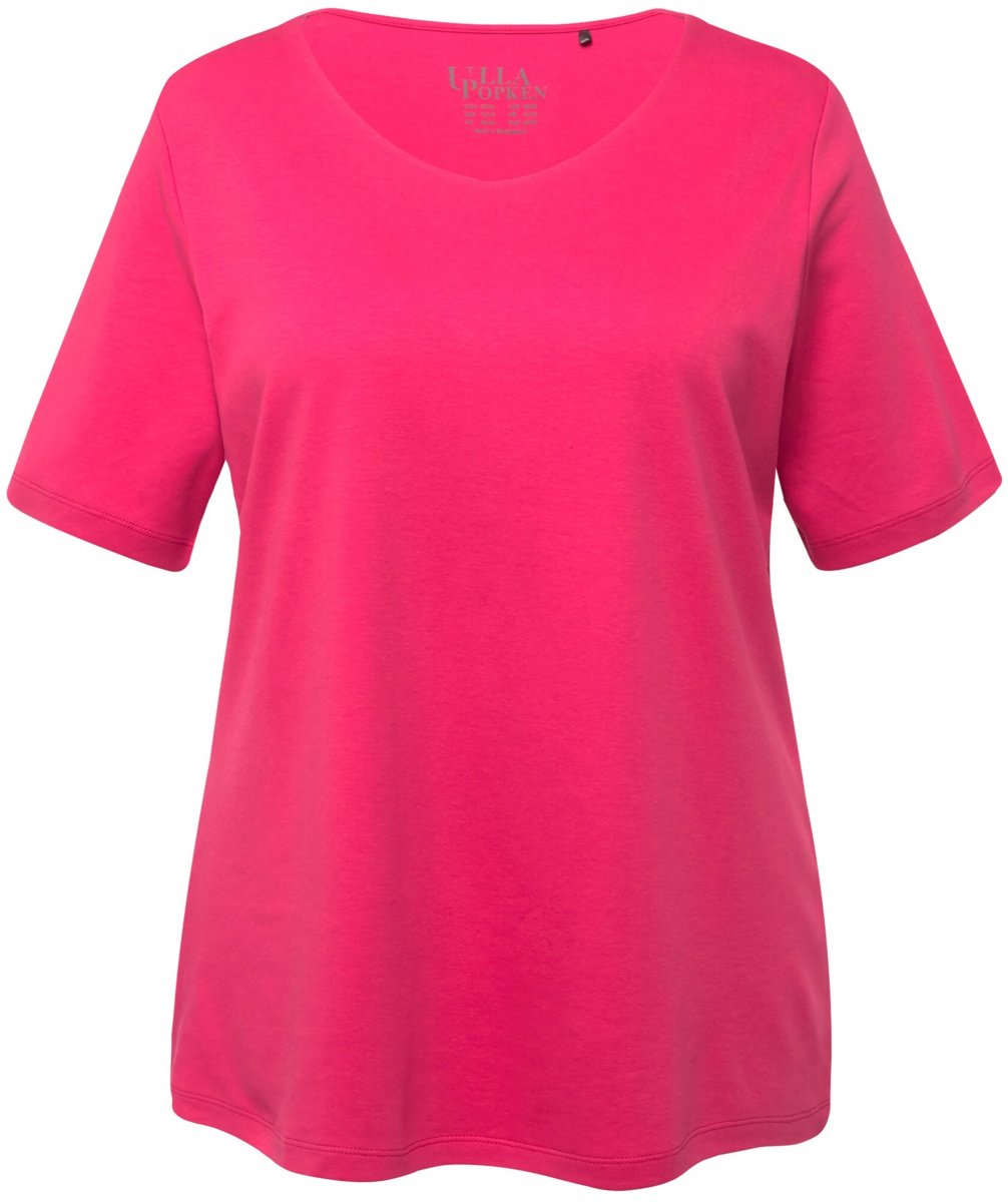 Storleksguide - Ulla Popken Double Layer Rounded V-Neck Slim Fit Tee Dark Pink