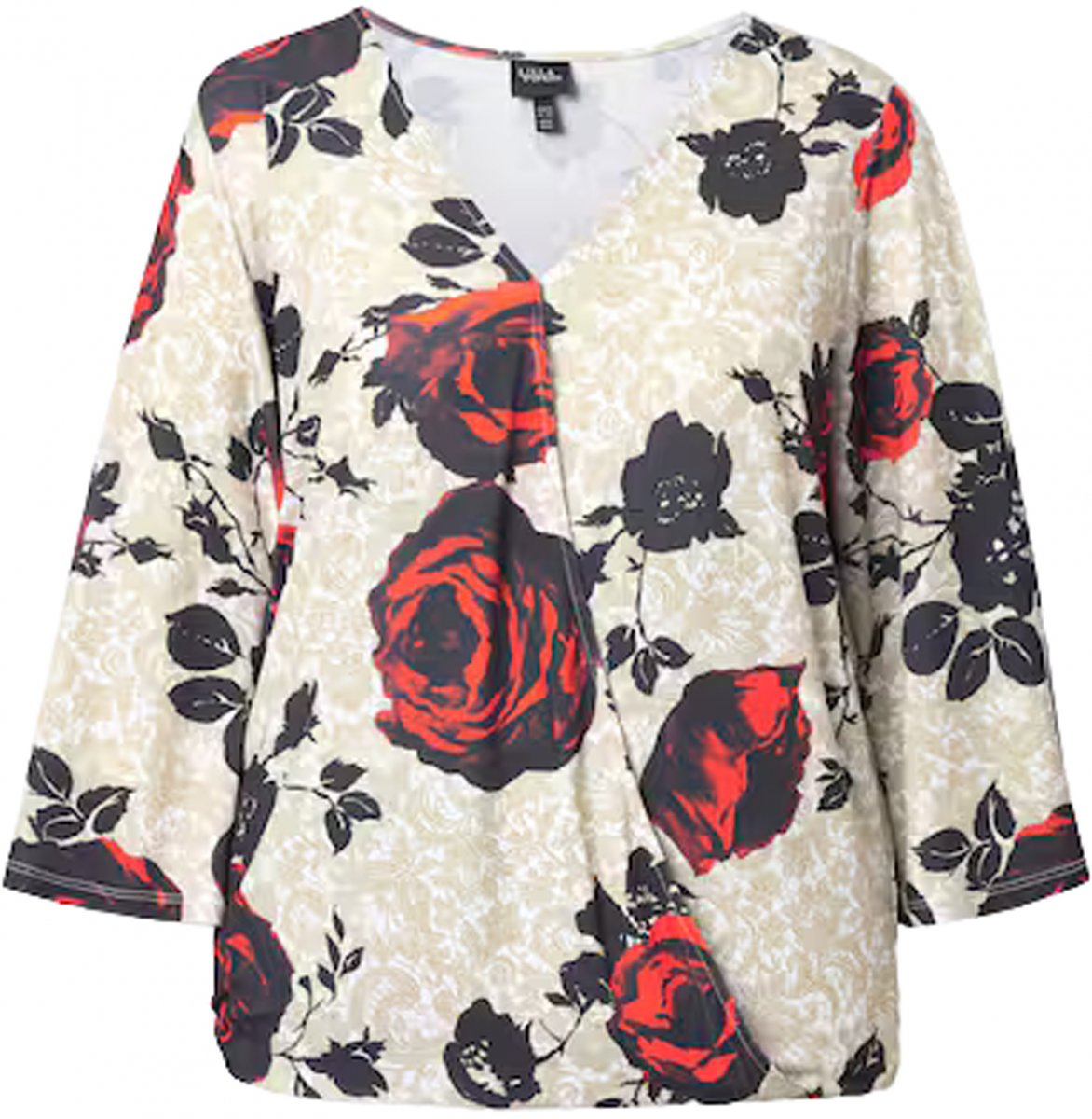 Storleksguide - Ulla Popken Rose Print Faux Wrap Top Off-White