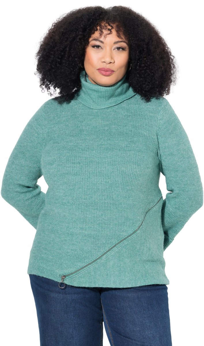 Storleksguide - Ulla Popken Asymmetric Zipper Turtleneck Sweater Green