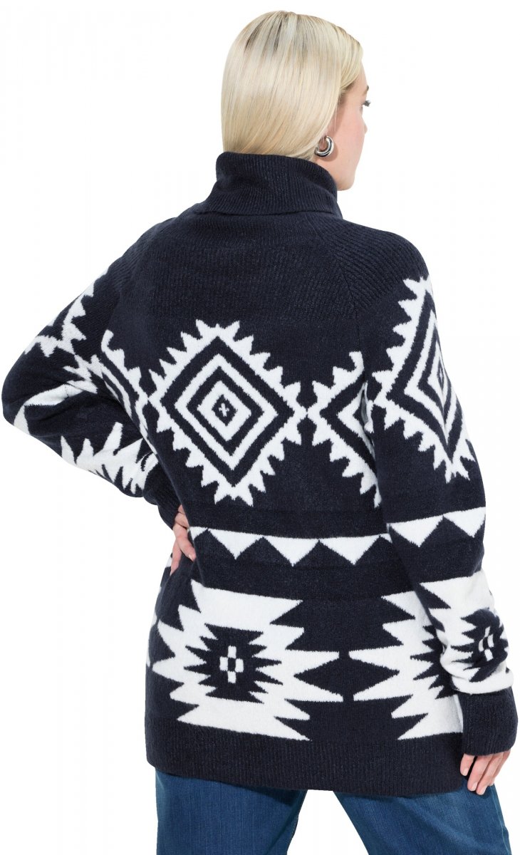 Ulla Popken Aztec-Inspired Long Sleeve Turtleneck Sweater Navy