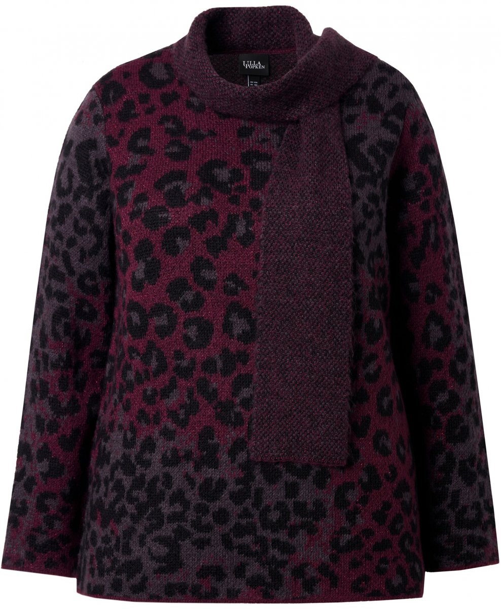 Storleksguide - Ulla Popken Leopard Print Scarf Sweater Dark Wine Red