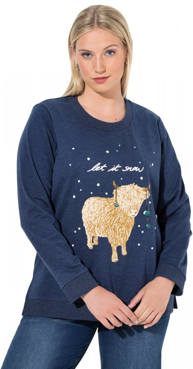 Ulla Popken Let It Snow Sequins Sweatshirt Ink Blue