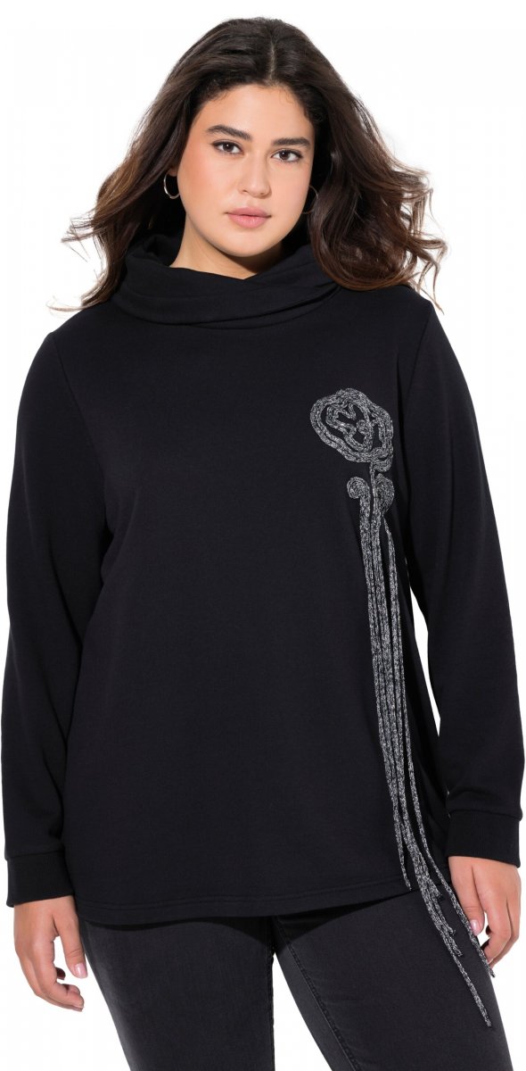 Ulla Popken Ribbon Detail Turtleneck Sweatshirt Black