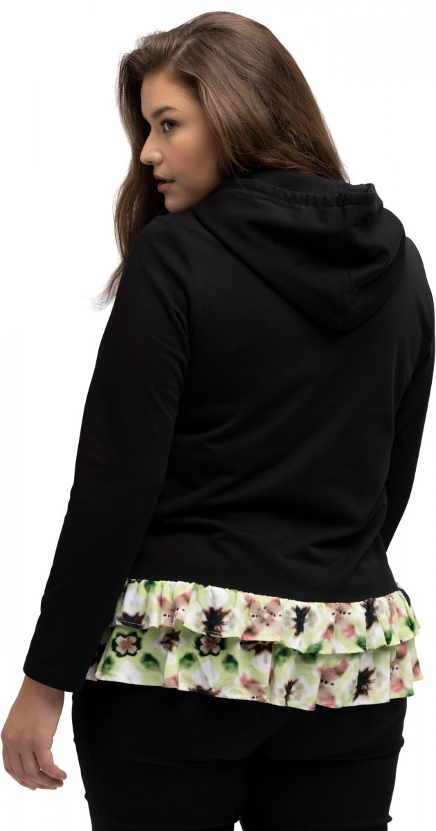 Storleksguide - Ulla Popken Ruffle Hem A-line Fit Hooded Sweatshirt Black