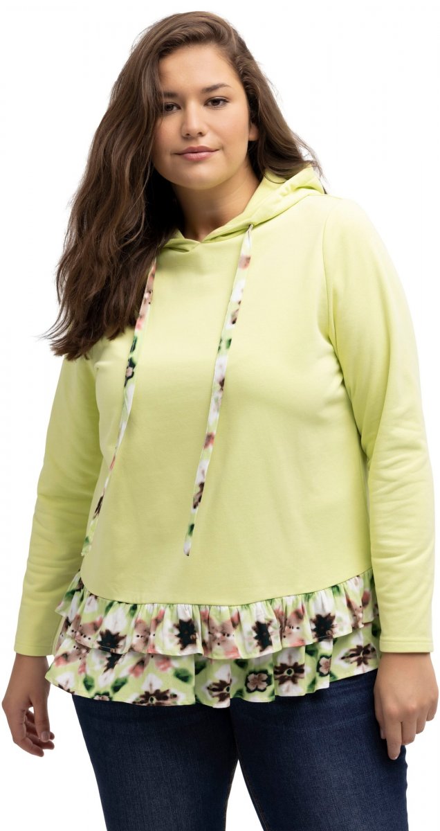 Storleksguide - Ulla Popken Ruffle Hem A-line Fit Hooded Sweatshirt Lime Green