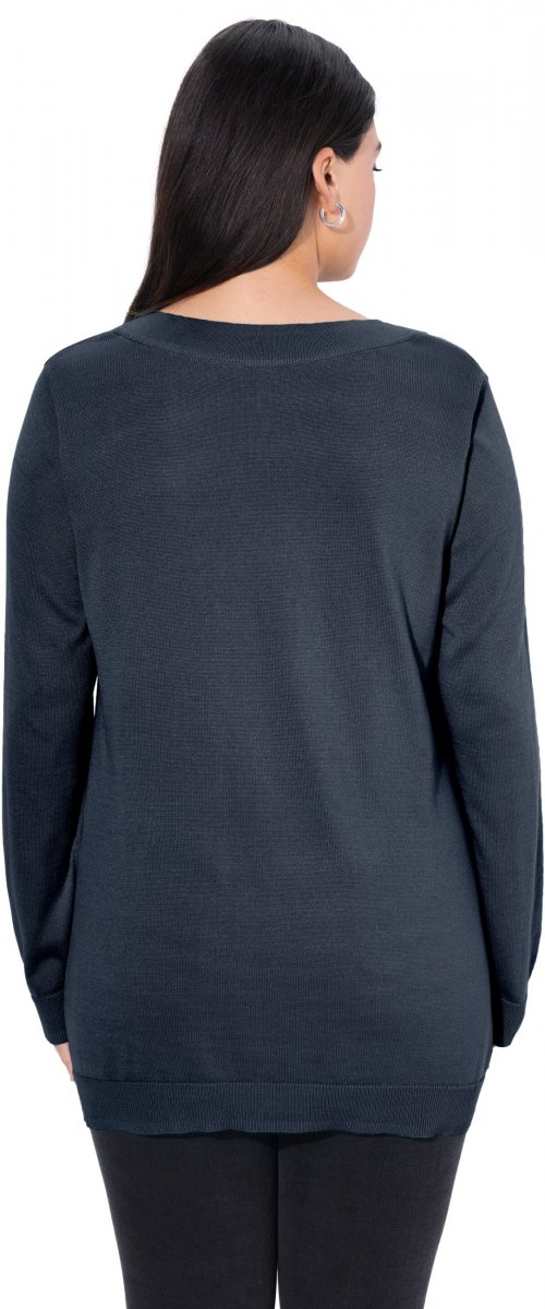 Storleksguide - Ulla Popken Soft Fine Knit Pullover V-Neck Sweatshirt Marine