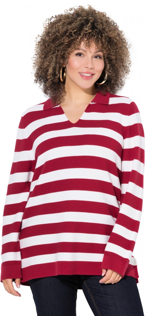 Storleksguide - Ulla Popken Striped Polo Collar Long Sleeve Sweater Ruby Red