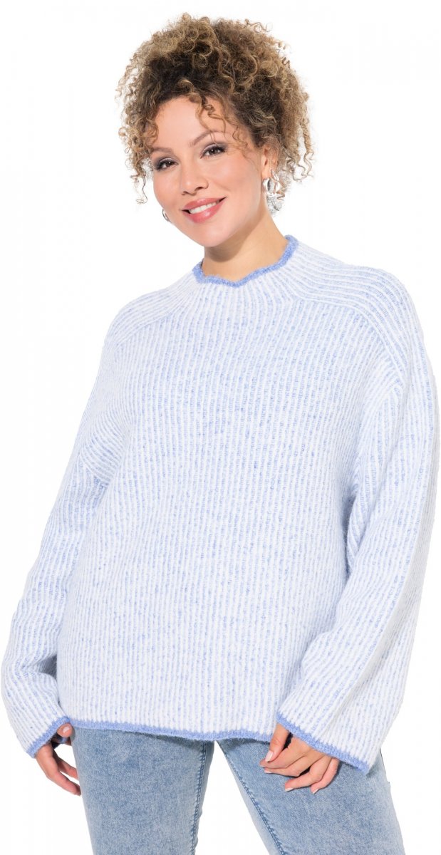 Storleksguide - Ulla Popken Striped Wool Blend Turtleneck Sweater Sky Blue