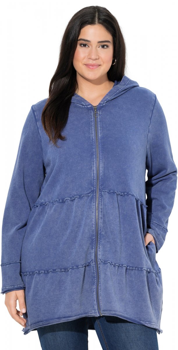 Storleksguide - Ulla Popken Tiered Flounce Panel Zip Up Hoodie Atlantic Blue