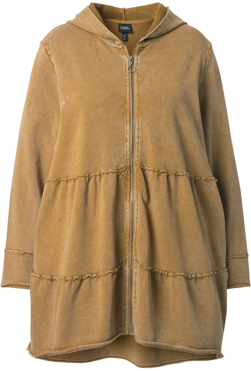 Storleksguide - Ulla Popken Tiered Flounce Panel Zip Up Hoodie Mocha Brown