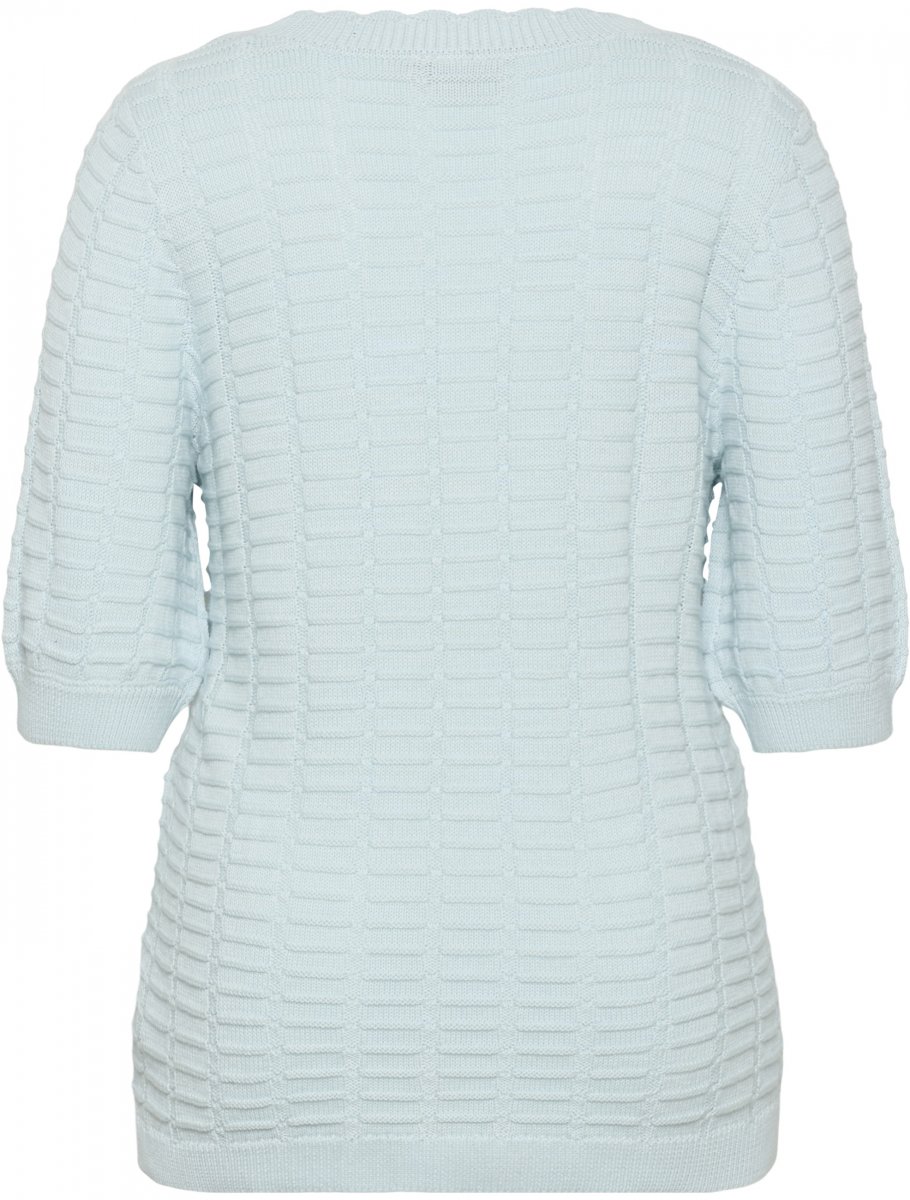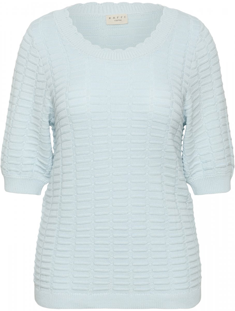 Stickad tröjaFinns hos oss i storlekar S–XLFrån märket Kaffe CurveMaterial: 50 % bomull, 50 % akrylNormal passformFärgen är blåKlicka här för att se storleksguiden