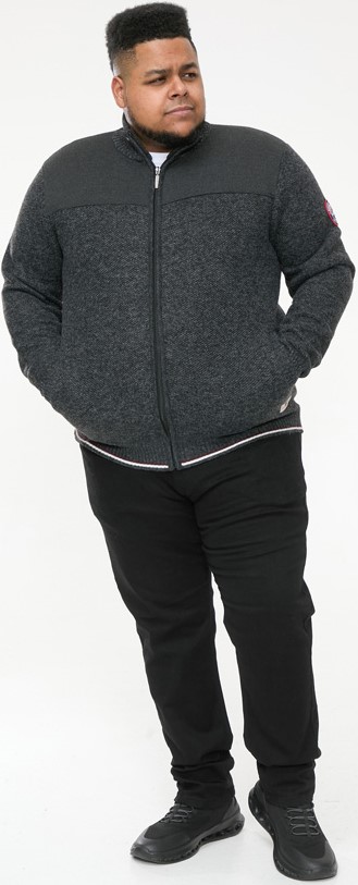 Stickad tröja i stora storlekarFinns hos oss i storlekar 2XL–8XLFrån märket D555Tillverkad av 100 % polyesterFärgen är mörkgråMaskintvättas i 30°Säsongsprodukt - storlekar fylls inte påKlicka här för att se storleksguiden