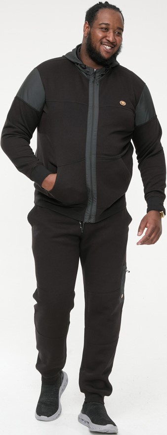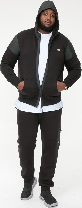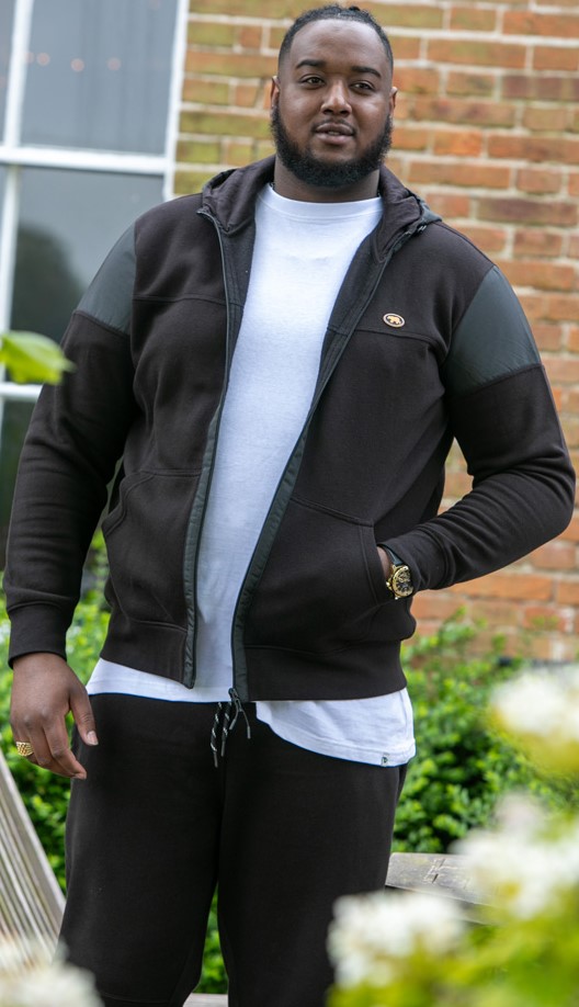 Storleksguide - D555 DEAN Couture Zip Through Hoody With Woven Contrast Fabric Trim Black