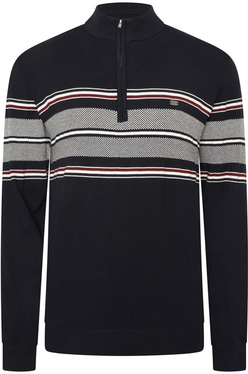 Storleksguide - Kam Jeans 93 Stripe 1/4 Zipper Knitted Sweater Navy