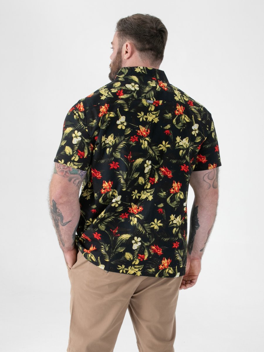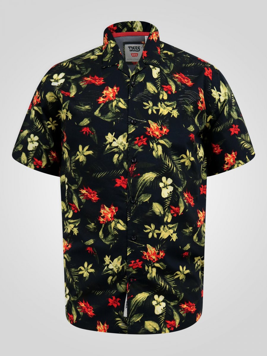 Storleksguide - D555 Gordon Hawaiian AOP Cuvan Collar Resort Short Sleeve Black
