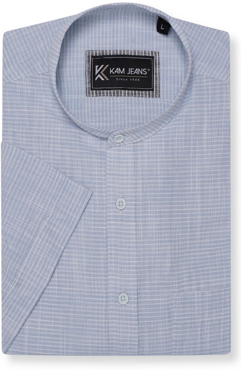 Storleksguide - Kam Jeans 6334 Striped Grandad Short Sleeve Shirt Blue