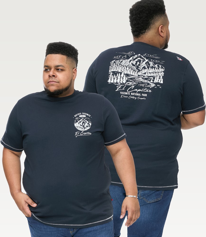 Storleksguide - D555 GRAHAM YOSEMITE Chest And Back Printed Crew Neck T-Shirt Navy
