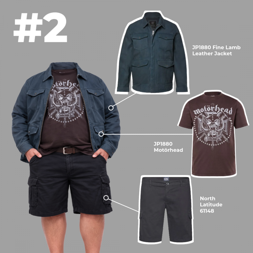 Ett bra val för svalare vårdagar. Jackan ger värme, T-shirten håller stilen avslappnad, och cargoshortsen har praktiska fickor.