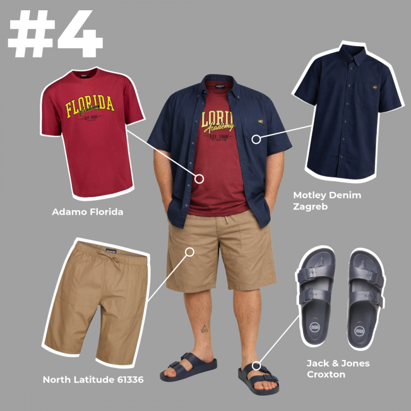 En enkel outfit för varmare dagar. Den öppna skjortan känns stilren och luftig, shortsen håller looken avslappnad, och sandalerna passar perfekt för soliga dagar.